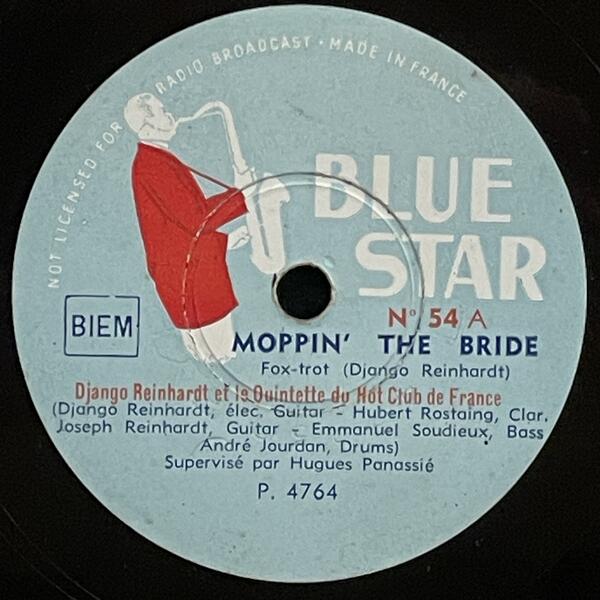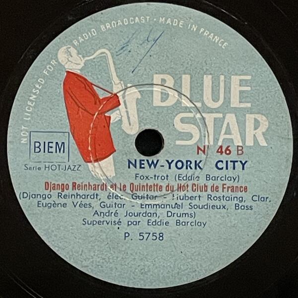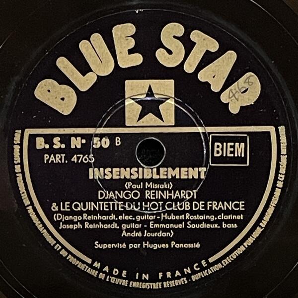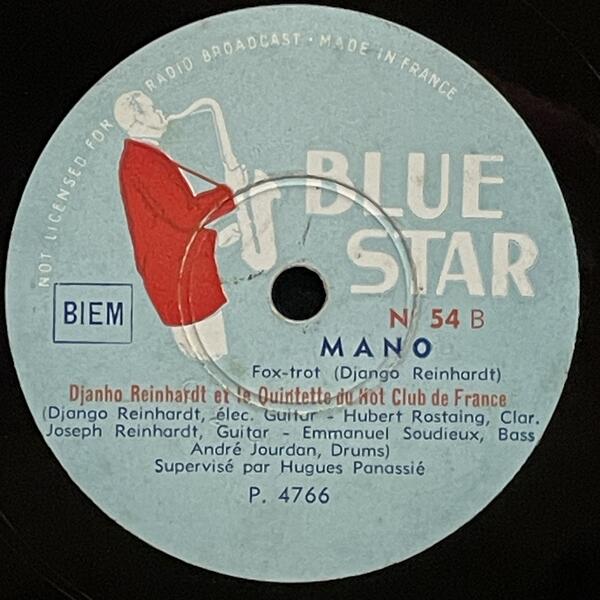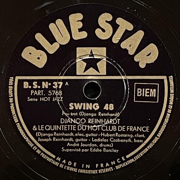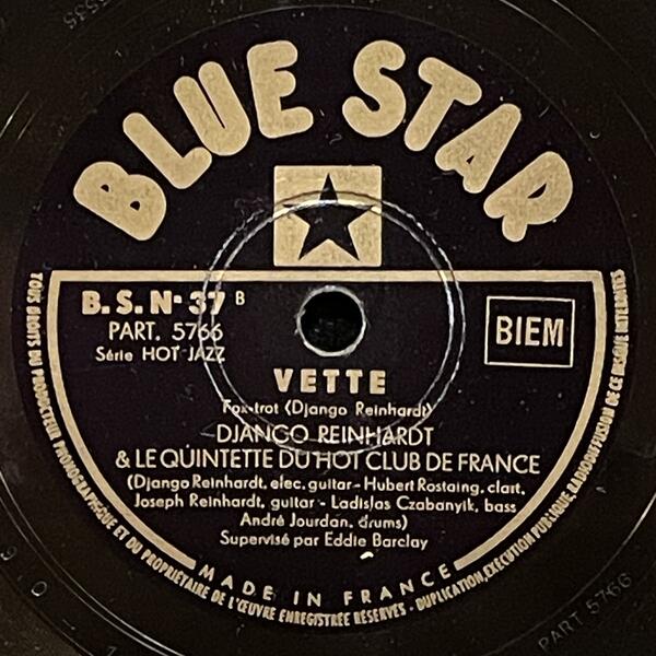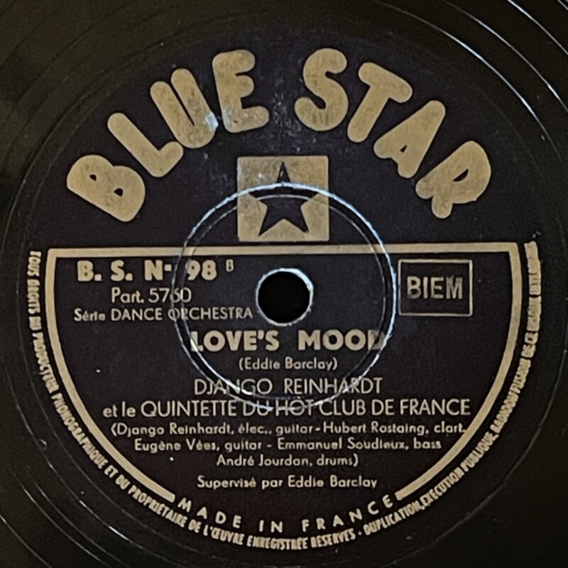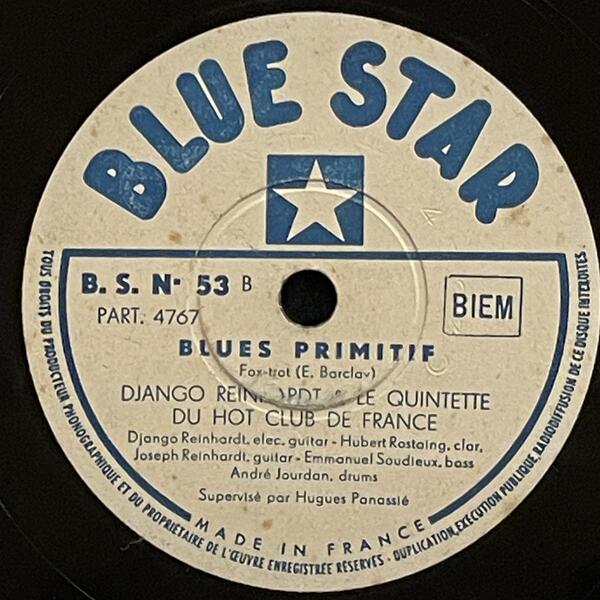 Django Reinhardt & Hubert Rostaing on Blue Star — 78rpm shellac 1947