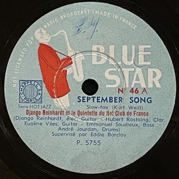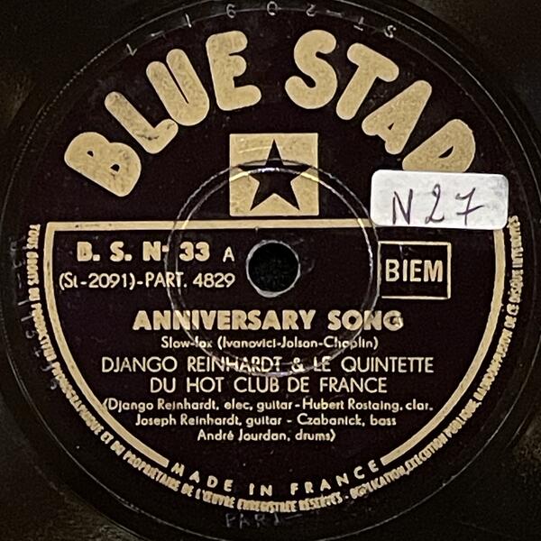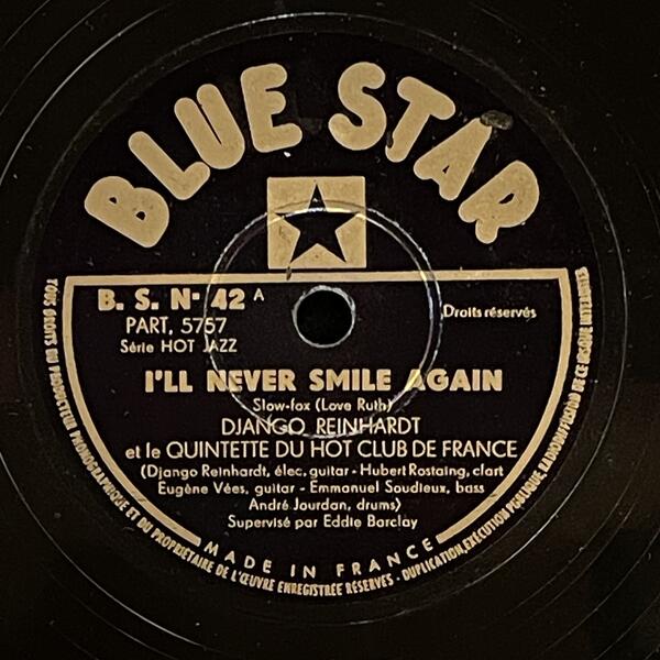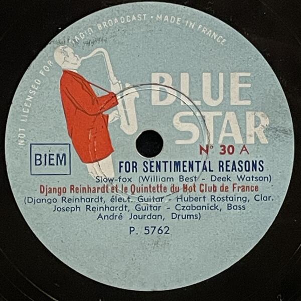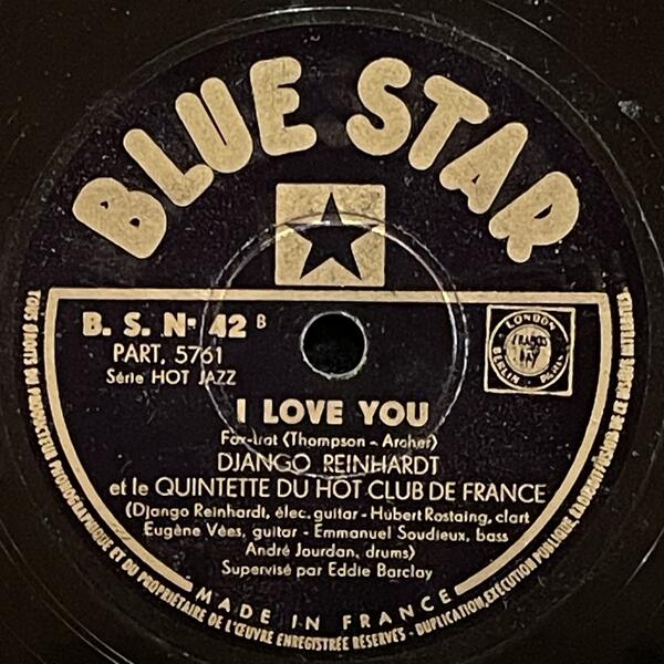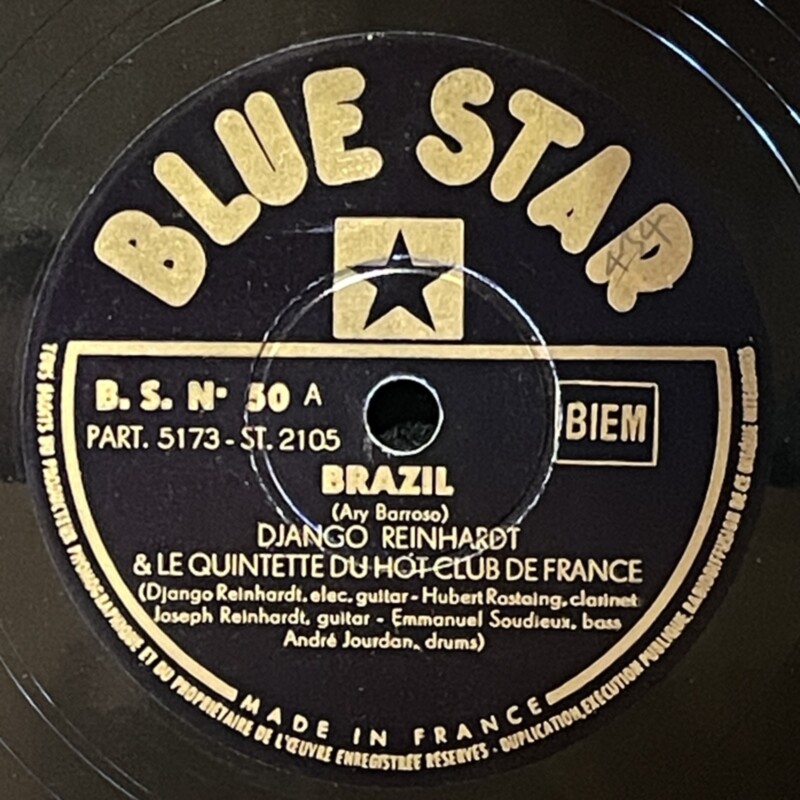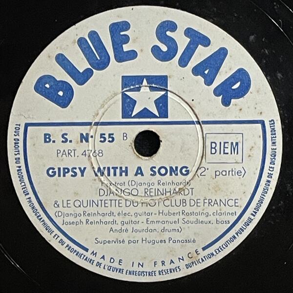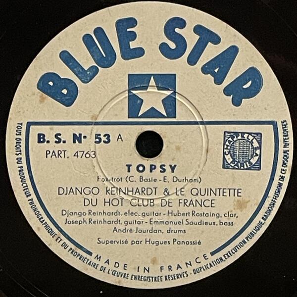 Django Reinhardt & Hubert Rostaing on Blue Star — 78rpm shellac 1947