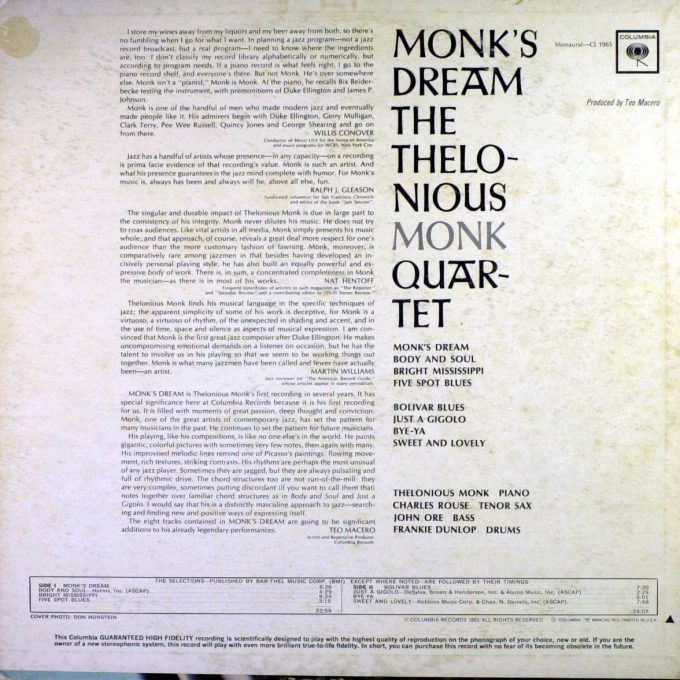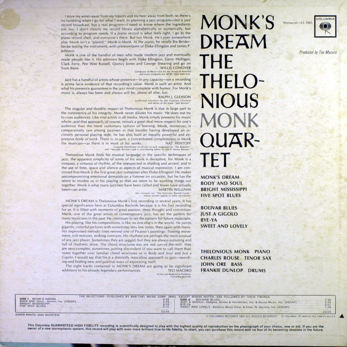Монк — крайне необычный тип, достойный самого пристального внимания. Его стиль я бы называл не Бибоп, как это принято, а Панк-Джаз. Когда-то прекрасную студию Коламбии здесь узнать сложно, в записях появились жесткие, агрессивные нотки, певучесть 1940х канула в лету. Но Монку все нипочем.