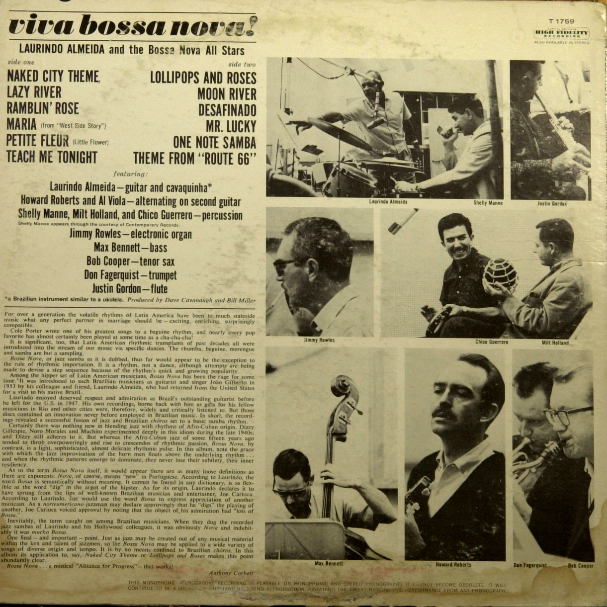 Laurindo Almeida — guitar, cavaquinha Howard Roberts, Al Viola — alternating on second guitar Shelly Manne, Milt Holland, Chico Guerrero — percussion Jimmy Rowles — electronic organ Max Bennett — bass Bob Cooper — tenor saxophone Don Fagerquist — trumpet Justin Gordon — fluteLP моно ремастеринг — ℗ Антон Степичев