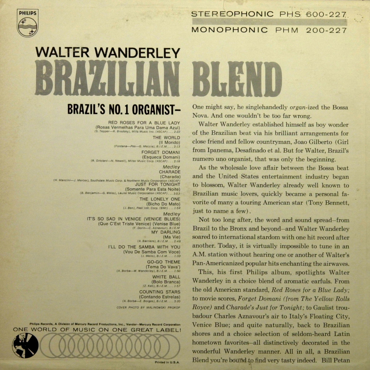 Hi-Fi бразильский звук 1960-х. Вэндерли — замечательный органист, умеющий создавать комфортную, позитивную атмосферу и записавший много интересных альбомов. Диск из поздних, не самый показательный и основательно заезженный, но «Красные Розы» здесь великолепны.