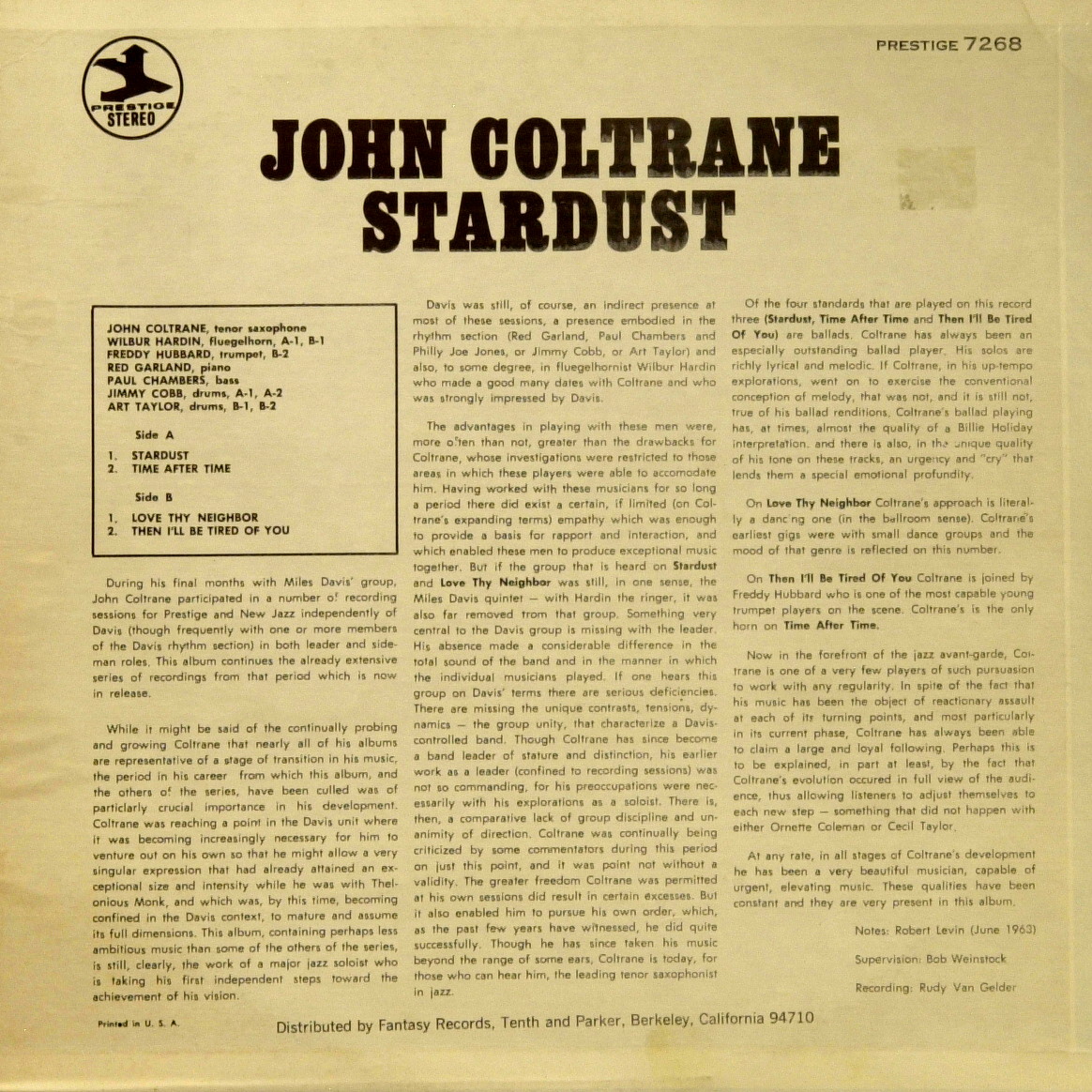 Японское переиздание 1984 года, тонкая, гибкая и легкая пластинка с выпуклыми бортами. Увы и ах. Треки записаны на Престиже в 1957-58 годах, сборник баллад издан в 1963 и звучал в оригинале соответственно круто. Японцы конечно старались, но у них получился лишь технический Hi-Fi. Отмытый и причесанный джаз приуныл, но не умер — Колтрейн в форме, его команда тоже. Вот только звук.. хотел бы я послушать оригинальную пластинку.
