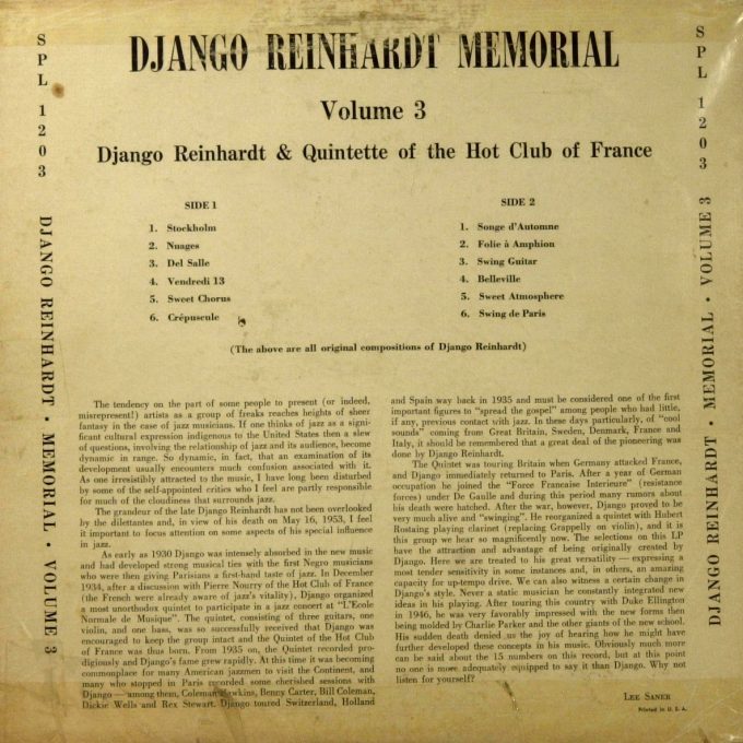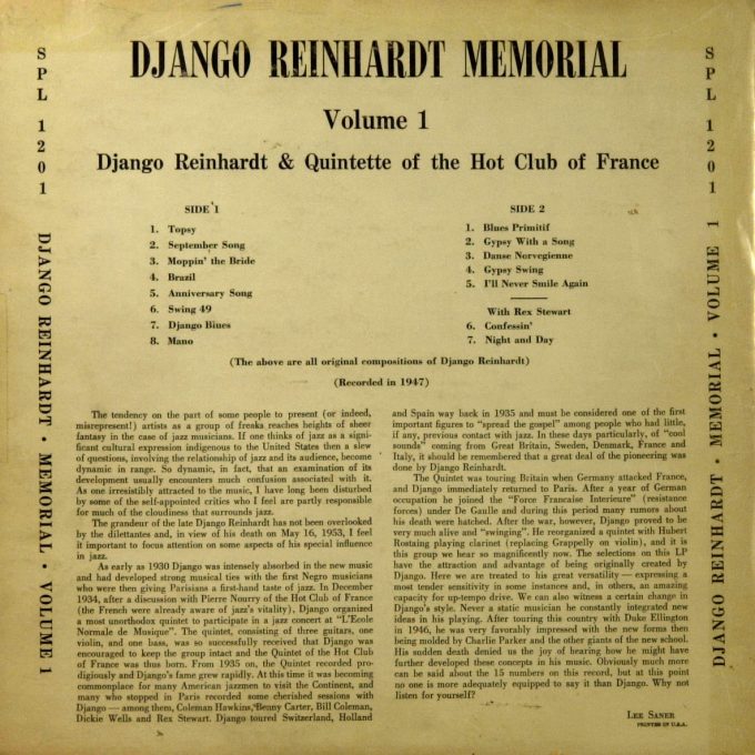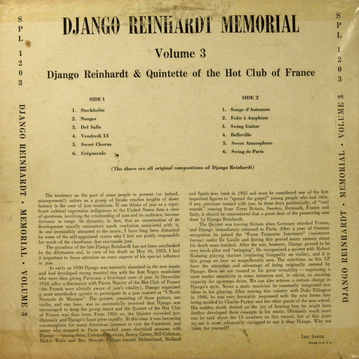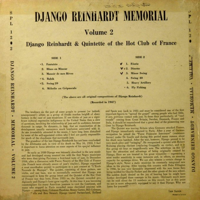 Записи 1947 года с множеством технического брака — перегрузки, кривой баланс, обрезанные ВЧ, при этом виртуозная гитара Джанго и изысканный кларнет (Hubert Rostaing) доставляют массу удовольствия, драйв зашкаливает, что, собственно, и нужно от хорошего свинга.