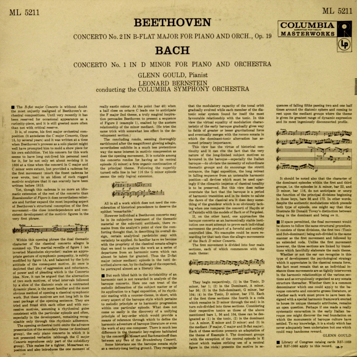 Сложная по звуку запись с проваленным «телом», рояль плохо совмещается с оркестром. Гульд гениально играет бессмертный концерт, на все времена.Glenn Gould and Leonard Bernstein conducting the Columbia Symphony Orchestra, Concerto No. 1 In D Minor For Piano And Orchestra