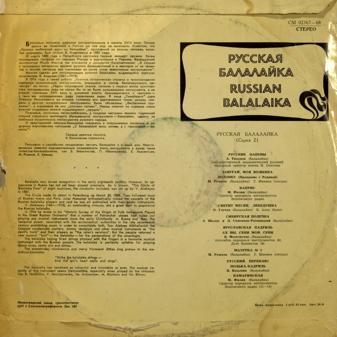 Русская балалайка, 1968 Мелодия LP Rip