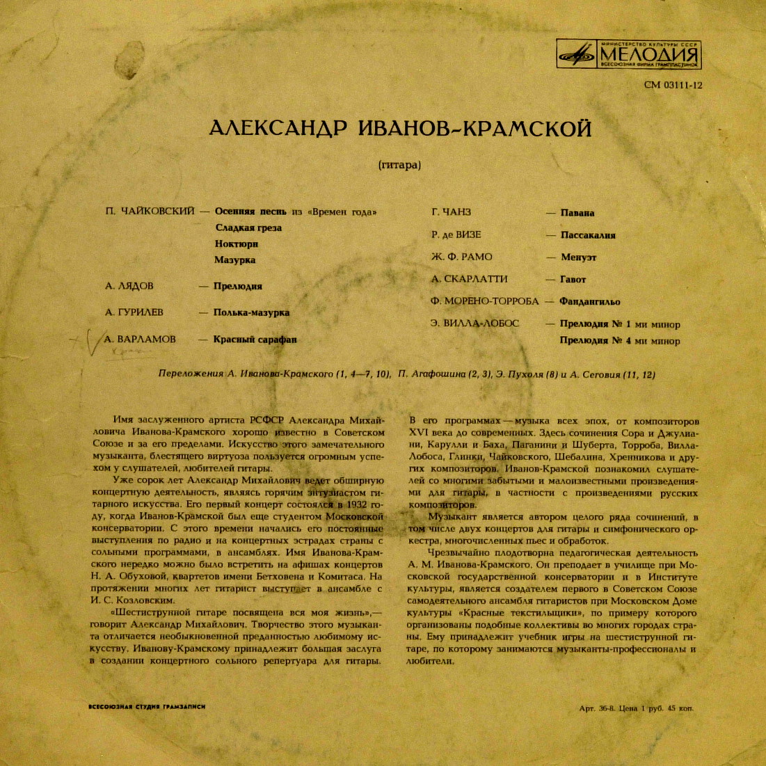 Александр Иванов — Крамской, 1972 Мелодия LP mono Rip
