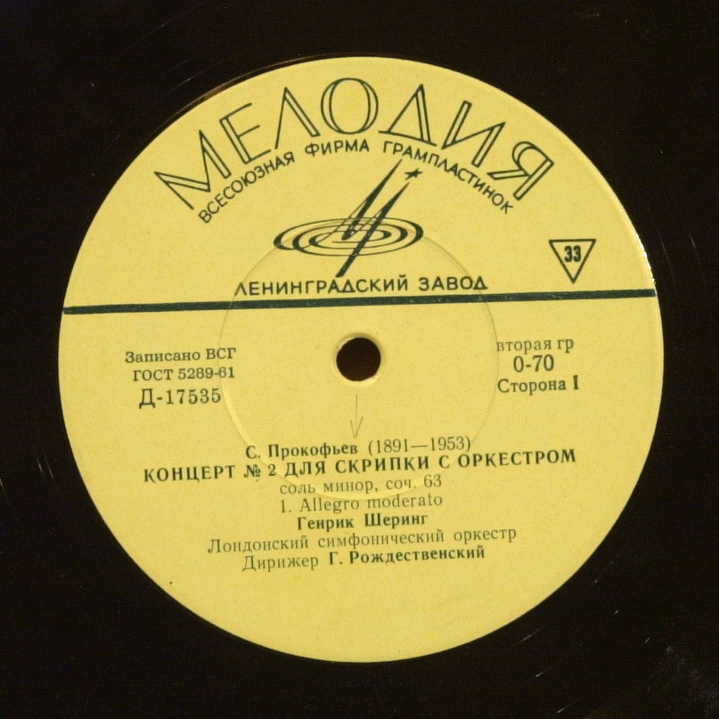 Прокофьев ‎– Концерт для скрипки № 2, Г. Шеринг 1966 LP Rip