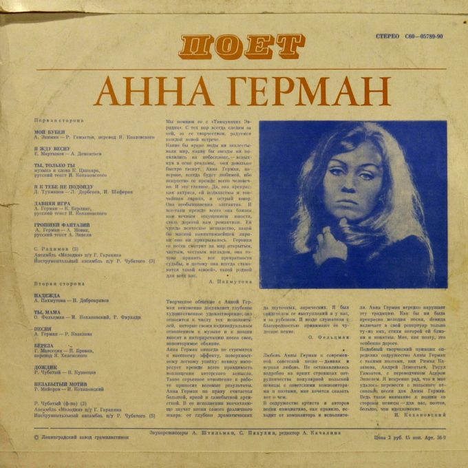 Анна Герман, 1975 Мелодия LP stereo & mono test