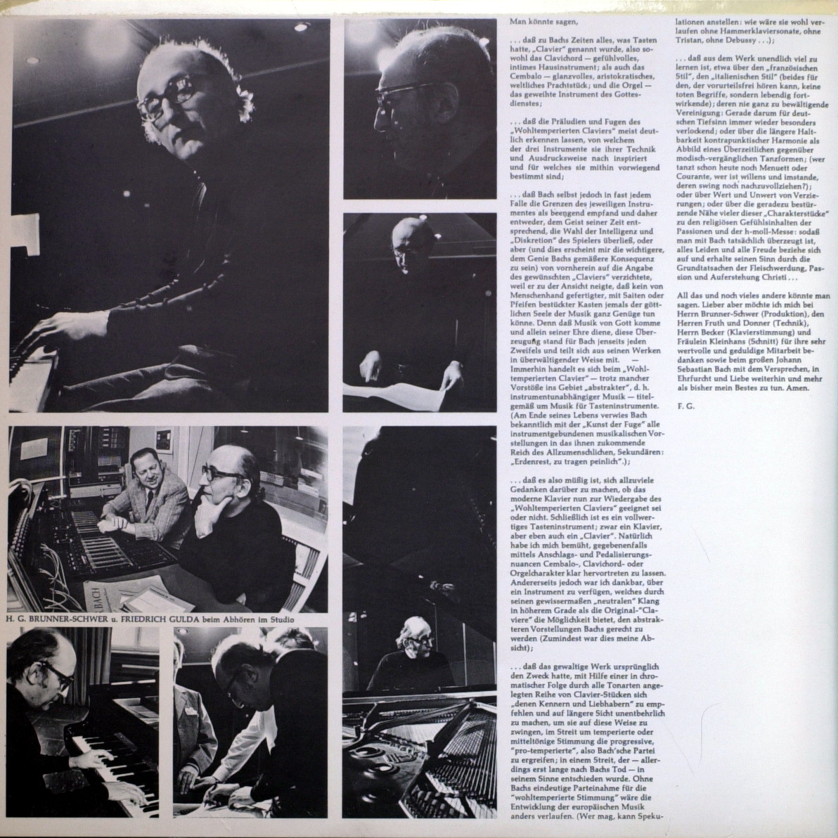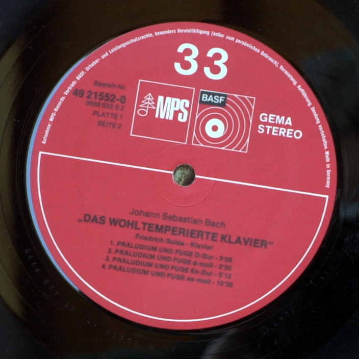 Немецкая пластинка MPS-Basf 1972 года, в целом записана и сведена плохо — многие прелюды с уровнем до -10дб, а последующие фуги — с перегрузкой, большинство номеров звучит бестелесно и холодно. Ф. Гульда, на мой вкус, играет ХТК слишком однообразно и жестко, особенно это касается фуг, однако пара удачно записанных прелюдов ясно демонстрируют, что за роялем мастер своего дела.