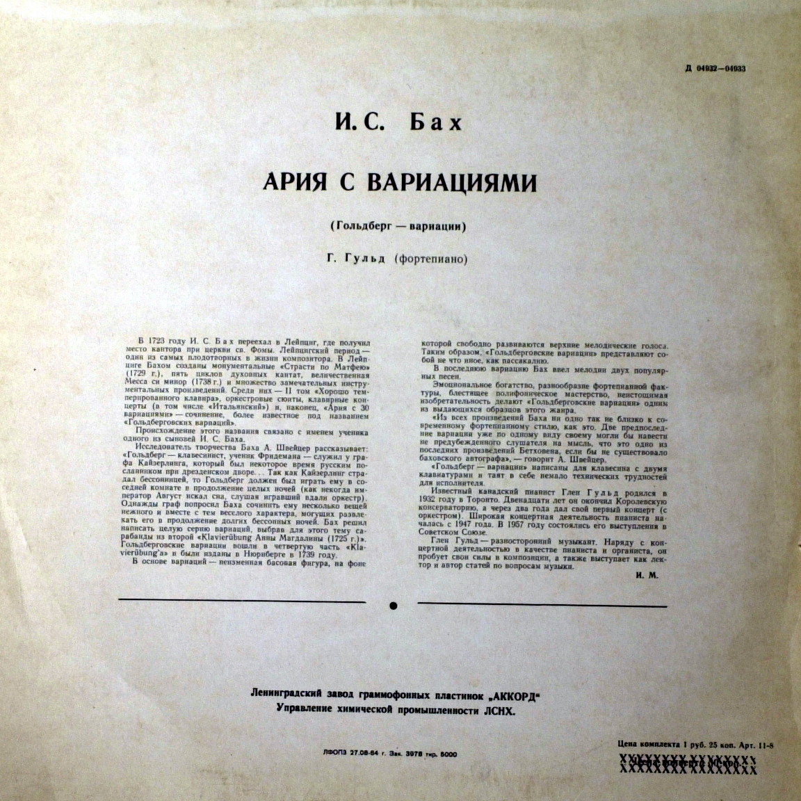 И.С.Бах — Голдберг вариации, Гленн Гульд — 1959 LP mono