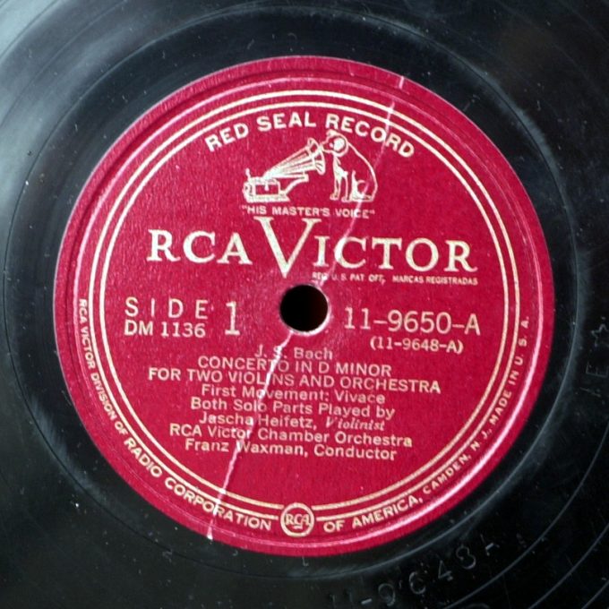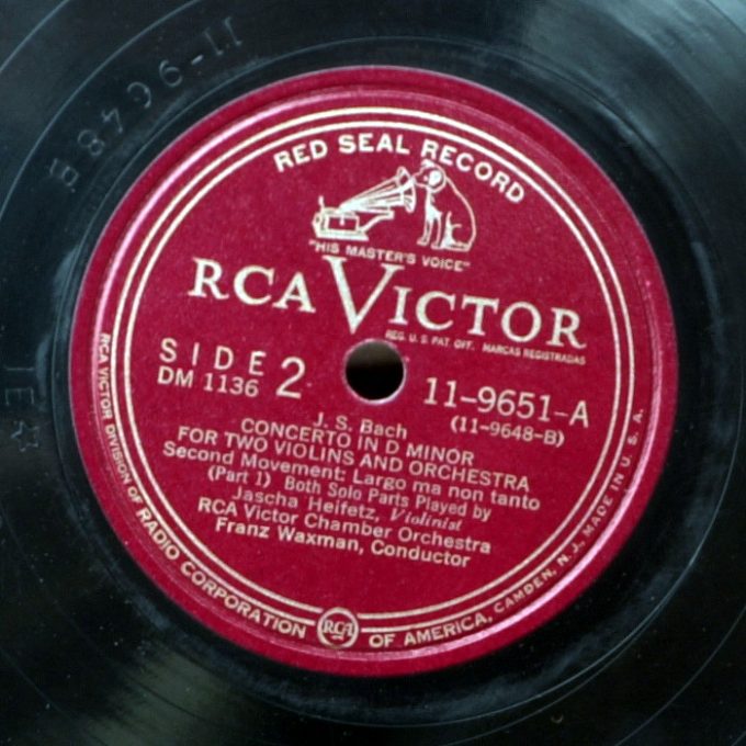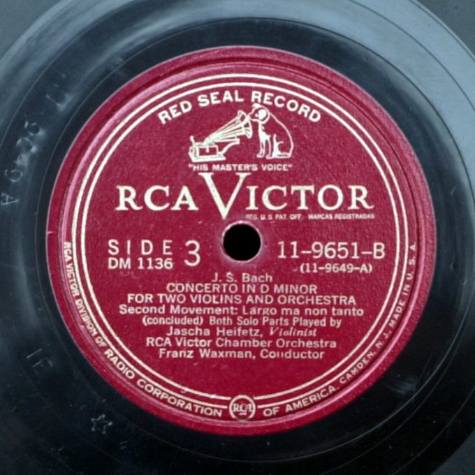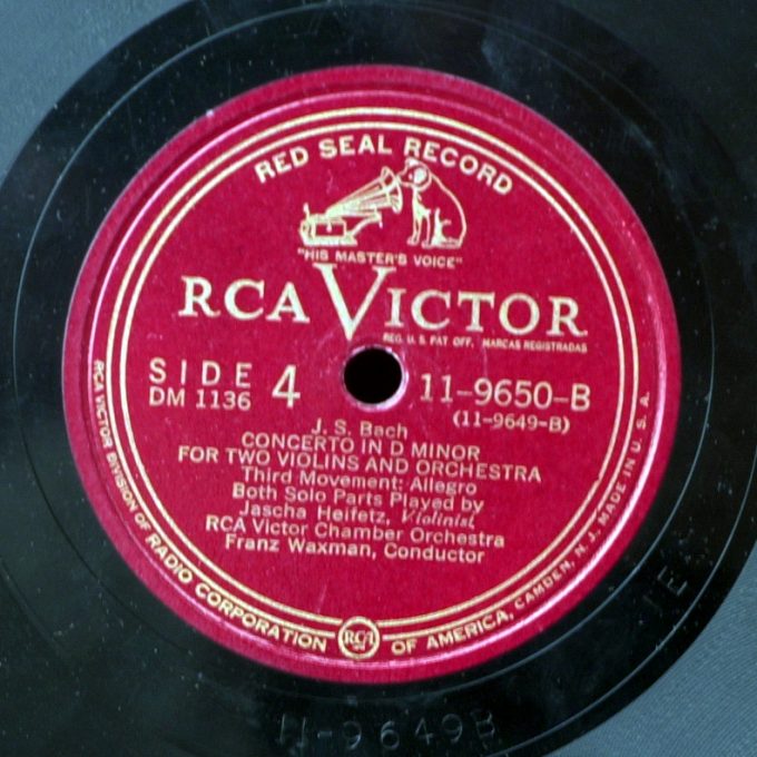 Обе партии записаны Хейфецем с помощью наложения. Запись считается провальной, на мой взгляд, из-за относительно глухого звучания и неудачной первой части: темп высоковат, оркестр играет монотонно, скрипки не различаются ни по тону, ни по стилю. Думаю, из-за этого многие так и не дослушали до Largo, первая половина которого сыграна и записана в музыкальном плане отлично. Во второй части Largo скрипки потеряли в голосе, но финал записан очень хорошо — экспрессивно и с настроением.