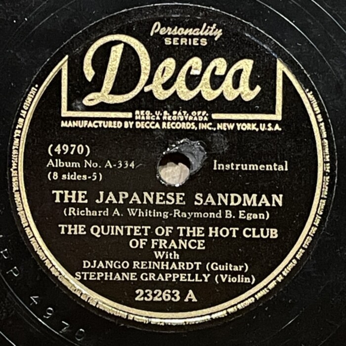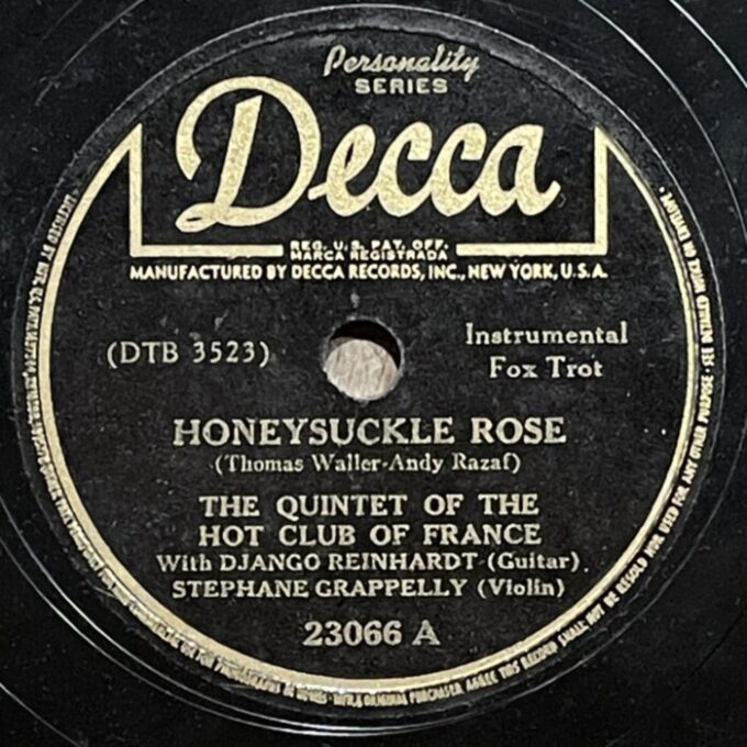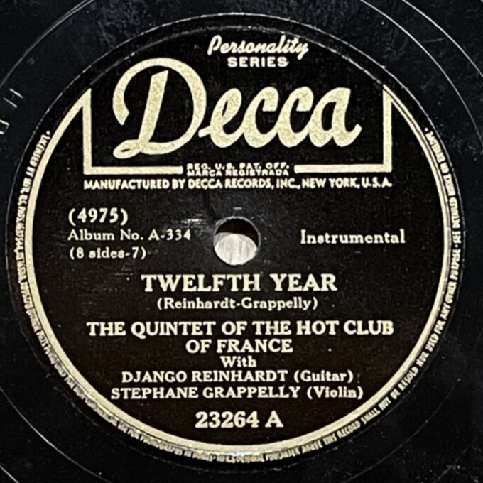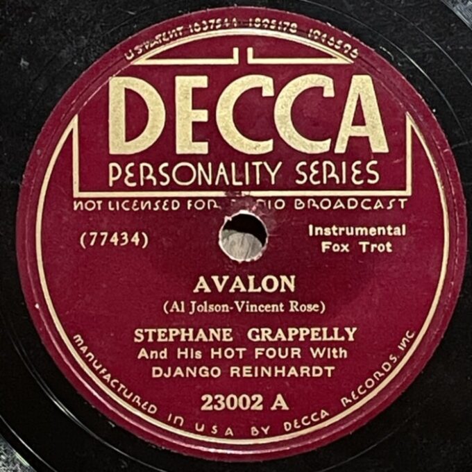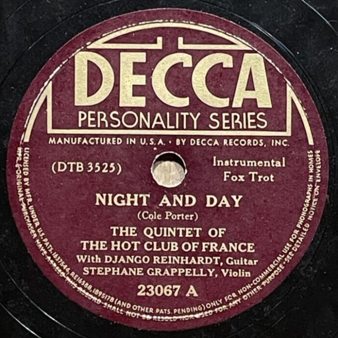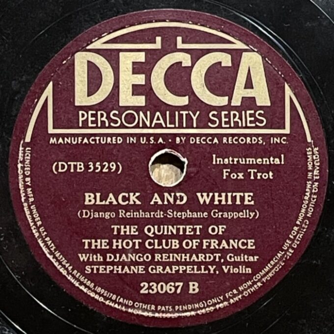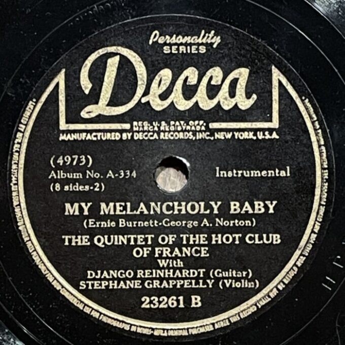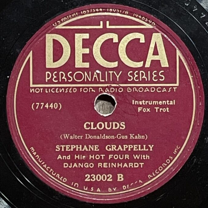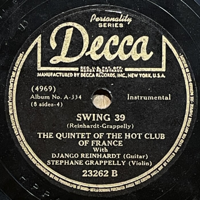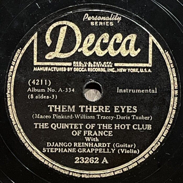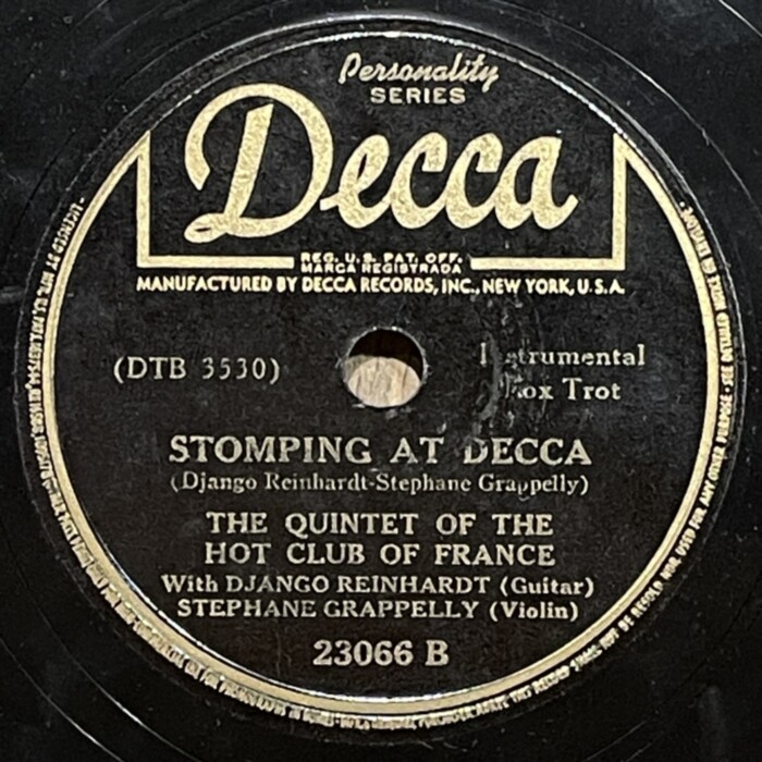 Django Reinhardt and Stefane Grappelly, 1935-1939 Decca personality series 78prm shellac rip Decca, Grappelly S., Raspberry PI, Reinhardt Django, Shellac, Гитара, Джаз, СкрипкаAnton Stepichev17/12/202508/01/2026 Послевоенное переиздание на Декке. Американские матрицы нарезались с магнитных лент, технические потери в сравнении с английским виниловым ремастерингом с оригинальных матриц значительны. Не смотря на это, музыкальность 78 пластинок вне конкуренции. HQ BTM PLAYER V4.43-319 ▲ 0:00/0:00 ... треков 00:00 Cкорость: - + 78.00 об/м. = +0.0 п/тон ФВЧ ФНЧ 7кГц 178 «Love Letters» Django Reinhardt - guitar, Stephane Grappelly - violin, The Quintet of the Hot Club of France, shellac 10" Decca Personality No. 4209. New York (Paris) 1938, 78.00 об/мин. 162 «Time On My Hands» Django Reinhardt - guitar, Stephane Grappelly - violin, The Quintet of the Hot Club of France, shellac 10" Decca Personality No. 4974. New York (Paris) 1939, 78.00 об/мин. 160 «Twelfth year» Django Reinhardt - guitar, Stephane Grappelly - violin, The Quintet of the Hot Club of France, shellac 10" Decca Personality No. 4975. New York (Paris) 1939, 78.00 об/мин. 206 «My Melancholy Baby» Django Reinhardt - guitar, Stephane Grappelly - violin, The Quintet of the Hot Club of France, shellac 10" Decca Personality No. 4973. New York (Paris) 1939, 78.00 об/мин. 155 «Stomping at Decca» Django Reinhardt - guitar, Stephane Grappelly - violin, The Quintet of the Hot Club of France, shellac 10" Decca Personality No. 3530. New York (London) 1938, 78.00 об/мин. 161 «Japanese Sandman» Django Reinhardt - guitar, Stephane Grappelly - violin, The Quintet of the Hot Club of France, shellac 10" Decca Personality No. 4970. New York (Paris) 1939, 78.00 об/мин. 183 «Them There Eyes» Django Reinhardt - guitar, Stephane Grappelly - violin, The Quintet of the Hot Club of France, shellac 10" Decca Personality No. 4211. New York (Paris) 1938, 78.00 об/мин. 177 «Three Little Words» Django Reinhardt - guitar, Stephane Grappelly - violin, The Quintet of the Hot Club of France, shellac 10" Decca Personality No. 4212. New York (Paris) 1938, 78.00 об/мин. 186 «Black and White» Django Reinhardt - guitar, Stephane Grappelly - violin, The Quintet of the Hot Club of France, shellac 10" Decca Personality No. 3529. New York (London) 1938, 78.00 об/мин. 176 «Honeysuckle Rose» Django Reinhardt - guitar, Stephane Grappelly - violin, The Quintet of the Hot Club of France, shellac 10" Decca Personality No. 23066. New York (London) 1938, 78.00 об/мин. 174 «Avalon» Django Reinhardt - guitar, Stephane Grappelly - violin, The Quintet of the Hot Club of France, shellac 10" Decca Personality No. 77434. New York (Paris) 1935, 78.00 об/мин. 195 «Clouds» Django Reinhardt - guitar, Stephane Grappelly - violin, The Quintet of the Hot Club of France, shellac 10" Decca Personality No. 77440. New York (Paris) 1935, 78.00 об/мин. 199 «Swing 39» Django Reinhardt - guitar, Stephane Grappelly - violin, The Quintet of the Hot Club of France, shellac 10" Decca Personality No. 4969. New York (Paris) 1939, 78.00 об/мин. 183 «Direct Appeal» Django Reinhardt - guitar, Stephane Grappelly - violin, The Quintet of the Hot Club of France, shellac 10" Decca Personality No. 4213. New York 1938, 78.00 об/мин. 162 «Night and Day» Django Reinhardt - guitar, Stephane Grappelly - violin, The Quintet of the Hot Club of France, shellac 10" Decca Personality No. 3525. New York (London) 1938, 78.00 об/мин. 144 «Some of these days» Django Reinhardt - guitar, Stephane Grappelly - The Quintet of the Hot Club of France, shellac 10" Decca Personality No. 77539. New York (Paris) 1935, 78.00 об/мин. 219 «Lily Belle May June» Django Reinhardt - guitar, Stephane Grappelly - violin, Jerry Mengo - vocal, The Quintet of the Hot Club of France, shellac 10" Decca Personality No. 77240. New York (Paris) 1935, 78.00 об/мин. ▲ Ремастеринг — Антон Степичев