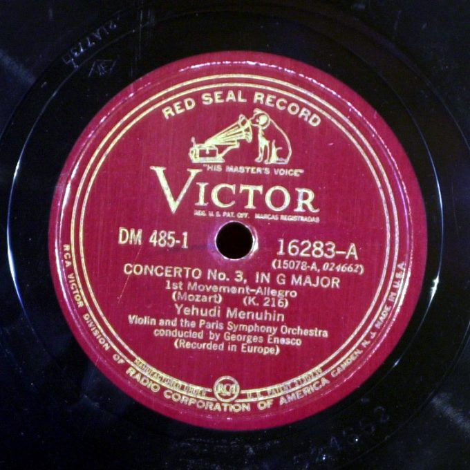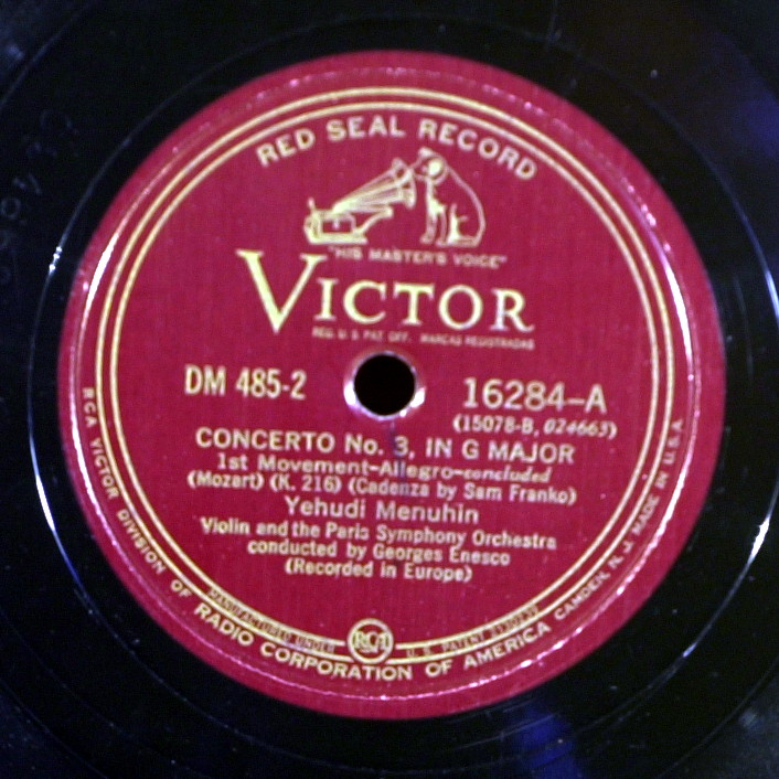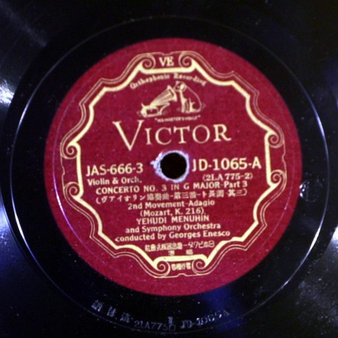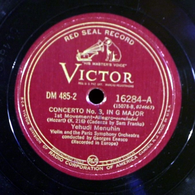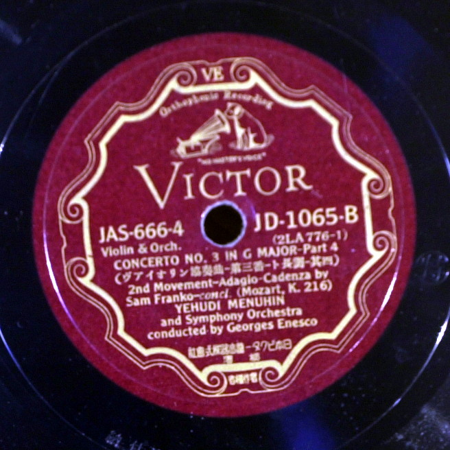 Менухин играет очень красиво, его довоенные пластинки принадлежат к золотому фонду скрипичной музыки. В записи мы слышим типичный, несколько прикрытый и окрашенный звук Victor, комплект сборный: первая часть — переиздание 1940х, вторая и третья части — японский первопресс 1930х. Потери у переиздания Victor не так велики, как это бывало на Коламбии и Декке, хотя в живую разница и очевидна, в цифре она практически сходит на нет.