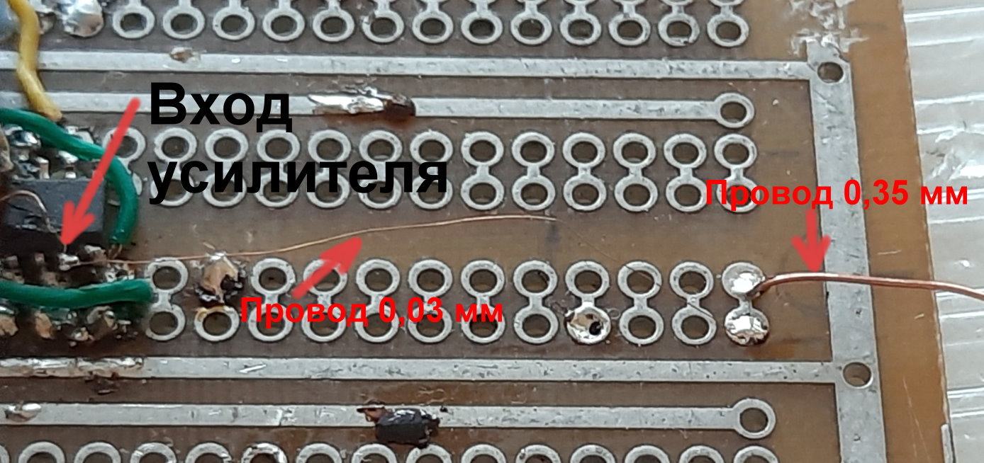 • Добрый день, Антон! Решил проверить, как передается звук по очень тонкому проводу (нашел проводок 0,03 мм) см. фото. И потом случайно обнаружил эффект самовозбуждения схемы «проводок — усилитель — динамик — поверхность диэлектрика со статическим зарядом) См. видео: https://youtu.be/_acMa0L3kr4