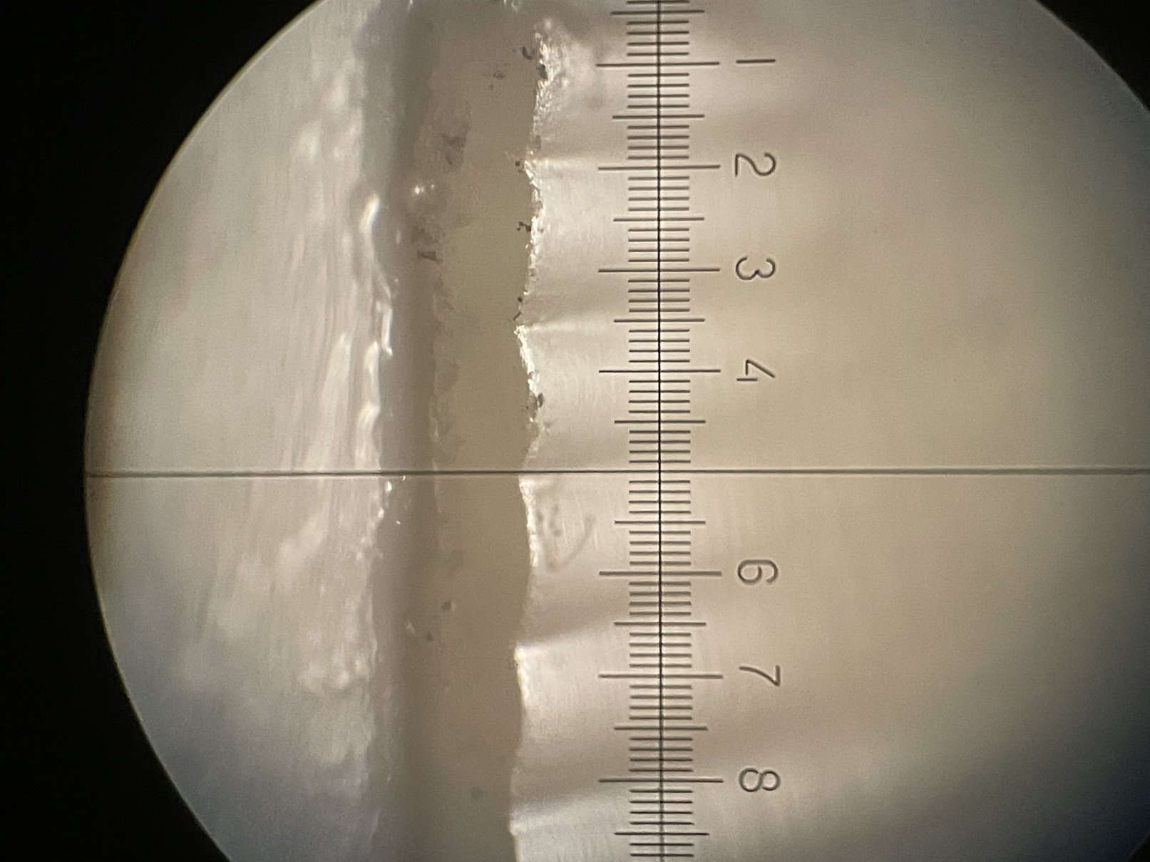 Снять точный отпечаток канавок удалось с помощью капли расплавленного воска. Поперечный срез снятой с поверхности пластинки застывшей капли был исследован под микроскопом (фото 4-6), оказалось, что канавки Pathe сферической формы и при этом мало выражены! Отсюда и неприхотливость к диаметру иголок (они все одинаково скользят прямо по дну канавки) и патологическая неспособность иголки держаться в канавке при небольших прижимах. Для информации — вес головки патефона варьируется в диапазоне 70-120 грамм, что исключают проблему плохого трекинга, однако, за счет усиленного износа пластинки.