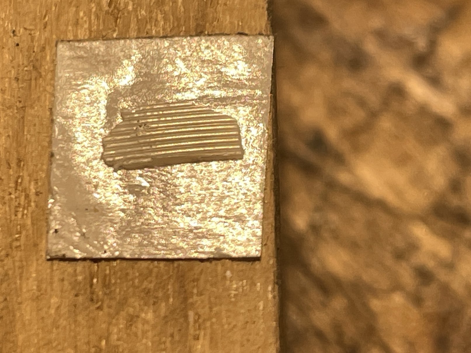 Во всех найденных мной источниках оценка канавок пластинки производилась с помощью фотографии поверхности пластинки (фото 2-3), которая не дает даже приблизительного понимания формы канавки. При обьяснении принципа вертикальной модуляции, канавку Pathe иногда рисуют с вертикальными бортами, что подразумевает устойчивость иголки в канавке даже лучше, чем в стандартных V-образных канавках, однако на практике все выходит наоборот. Короче, ничего было не понятно с этими Пате, для анализа ситуации нужна была точная форма канавки, однако бить редкую пластинку ради исследования скола как-то не хотелось.