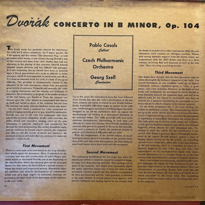 Dvořák Cello Concerto in B Minor — Pablo Casals, George Szell — 78 rpm shellac 1938