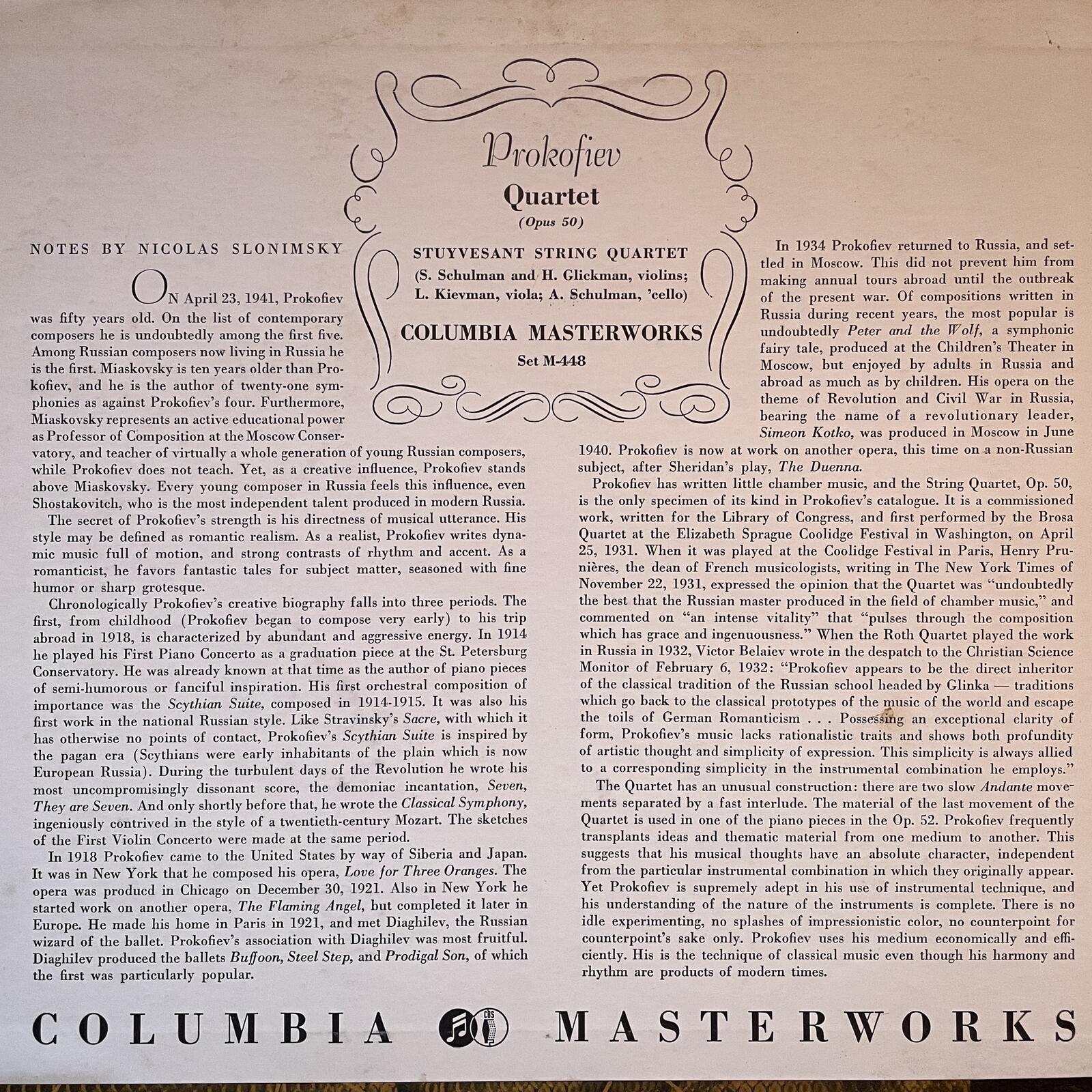 Prokofiev String Quartet No. 1 in B minor — Stuyvesant SQ, 78 rpm shellac 1948