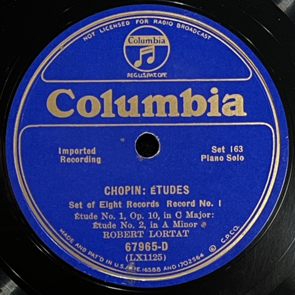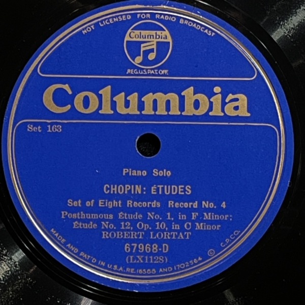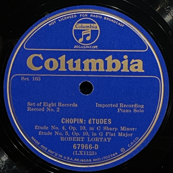 Robert Lortat plays Chopin etudes, 76-77 rpm shellac 1931 Chopin, Columbia, Lortat R., Shellac, ФортепианоAnton Stepichev05/06/202511/06/2025 В свое время Роберт Лортат был широко известен благодаря своим интерпретациям Шопена. Здесь можно оценить четыре вдохновенные и вдумчивые версии этюдов маэстро фортепиано. Неплохая запись, чистые пластинки. HQ BTM PLAYER V4.43-279 ▲ 0:00/0:00 ... треков 00:00 Cкорость: - + 78.00 об/м. = +0.0 п/тон ФВЧ ФНЧ 7кГц 178 Chopin - «Etude #6» op.10, Robert Lortat - fortepiano solo, shellac 12" Columbia No. 1124. US 1931, 77.00 об/мин. (Ebm) 99 Chopin - «Etude #5» op.10, Robert Lortat - fortepiano solo, shellac 12" Columbia No. 1123. US 1931, 77.00 об/мин. (Gb) 101 Chopin - «Etude #1» posthumous, Robert Lortat - fortepiano solo, shellac 12" Columbia No. 1128. US 1931, 77.00 об/мин. (Fm) 131 Chopin - «Etude #1» op.10, Robert Lortat - fortepiano solo, shellac 12" Columbia No. 1125. US 1931, 76.25 об/мин. (C) ▲ 78rpm shellac моно ремастеринг — Антон Степичев