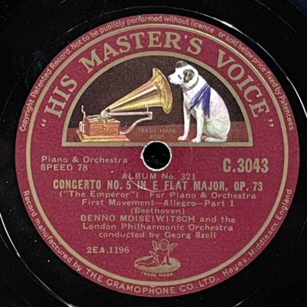 Beethoven Piano Concerto No. 5 «Emperor» — Benno Moiseewitsch, George Szell — 78rpm shellac 1938