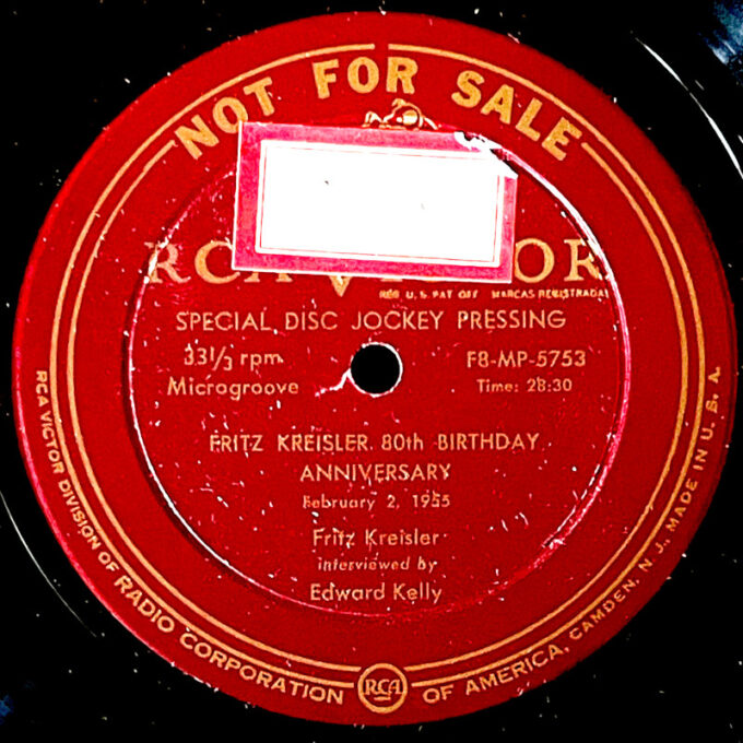 Fritz Kreisler 80th anniversary interview, 33 rpm vinyl 1955