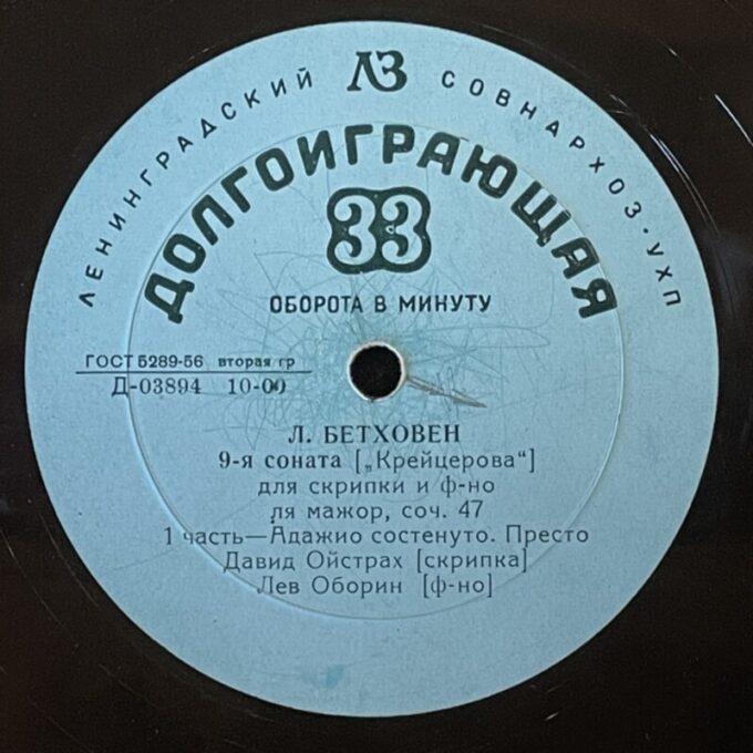 Бетховен — Крейцерова соната A-dur op. 47, Давид Ойстрах — Лев Оборин, винил LP 1956 Beethoven, Chamber music, Ленинградский Совнархоз, Оборин Л., Ойстрах Д., СкрипкаAnton Stepichev06/07/202511/07/2025 Пластинка прошла огонь и воду, была куплена в скупке лет 20 назад и все это время использовалась, как тестовая. Запись на редкость ясная, в сравнении с шеллаком резковата, исполнение — высший класс. HQ BTM PLAYER V4.43-310 ▲ 0:00/0:00 ... треков 00:00 Cкорость: - + 78.00 об/м. = +0.0 п/тон ФВЧ ФНЧ 7кГц 823 Beethoven - «Kreutzer sonate A-dur op. 47» Adagio sostenuto, Presto, Давид Ойстрах - скрипка, Лев Оборин - фортепиано, vinyl 12" Ленинградский Совнархоз No. Д-03894. СССР 1953 908 Beethoven - «Kreutzer sonate A-dur op. 47» Andante con variazioni, Давид Ойстрах - скрипка, Лев Оборин - фортепиано, vinyl 12" Ленинградский Совнархоз No. Д-03895. СССР 1953 502 Beethoven - «Kreutzer sonate A-dur op. 47» Finale - Presto, Давид Ойстрах - скрипка, Лев Оборин - фортепиано, vinyl 12" Ленинградский Совнархоз No. Д-03895. СССР 1953 ▲ 78rpm vinyl моно ремастеринг — Антон Степичев