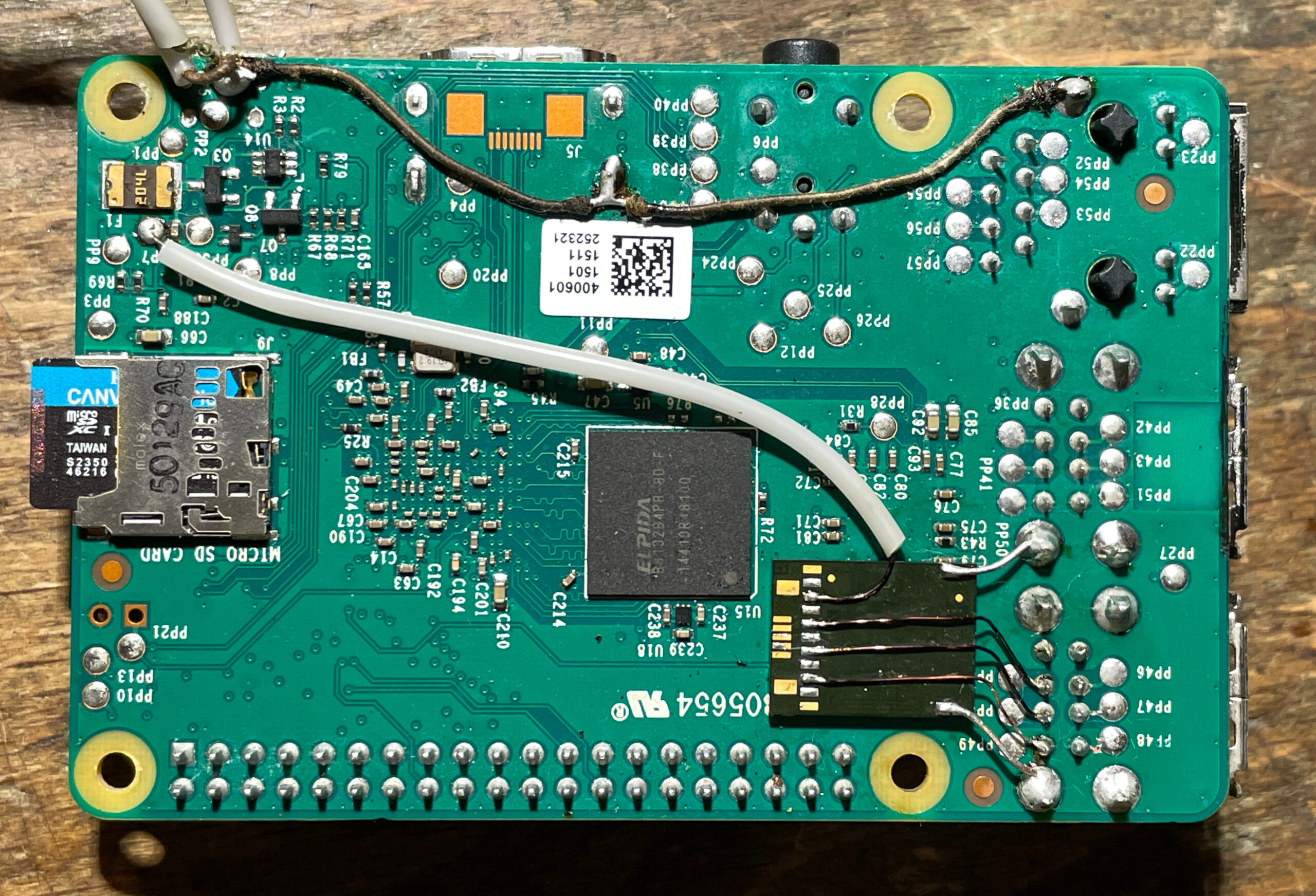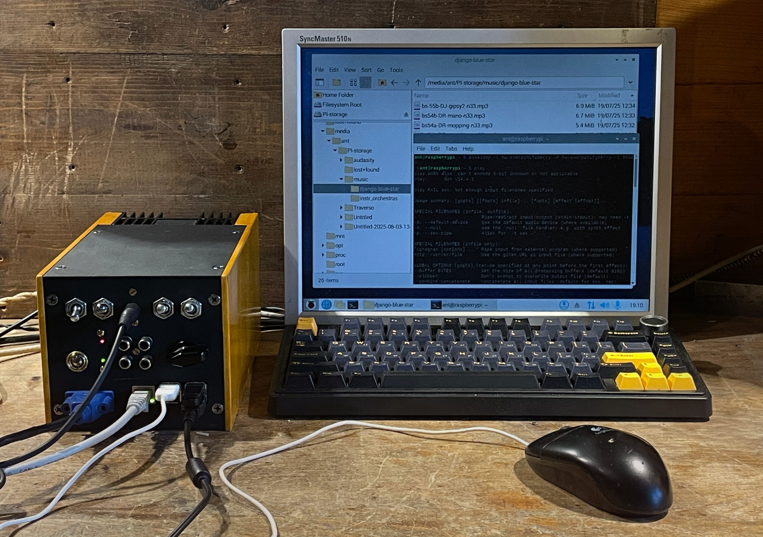 Из-за простоты конструкции Raspberry, USB клавиатура и мышь влияют на ее звук сильнее, чем в обычных компьютерах. Соответственно, было протестировано с десяток разных клавиатур, мышей и шнуров. Шнур и разъем для мыши в итоге был спаян вручную. По ходу дела было определено предпочтительное направление проводов USB интерфейса — земля и оба провода данных от компьютера к потребителю, питание — от потребителя к компьютеру.