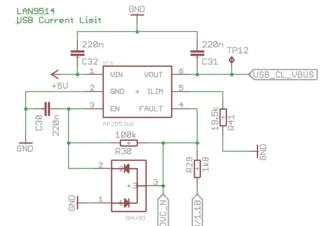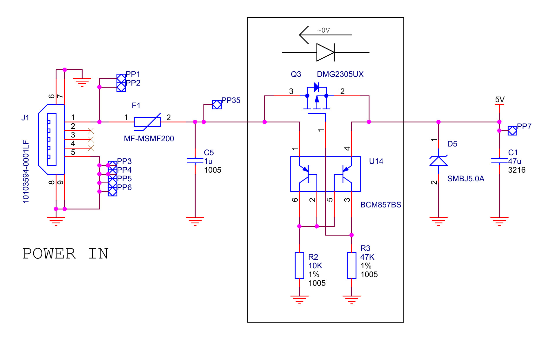 Расположенная на плате Rasspberri схема защиты шины питания не используется — питание подано в точку PP7 (см. фрагмент схемы выше).