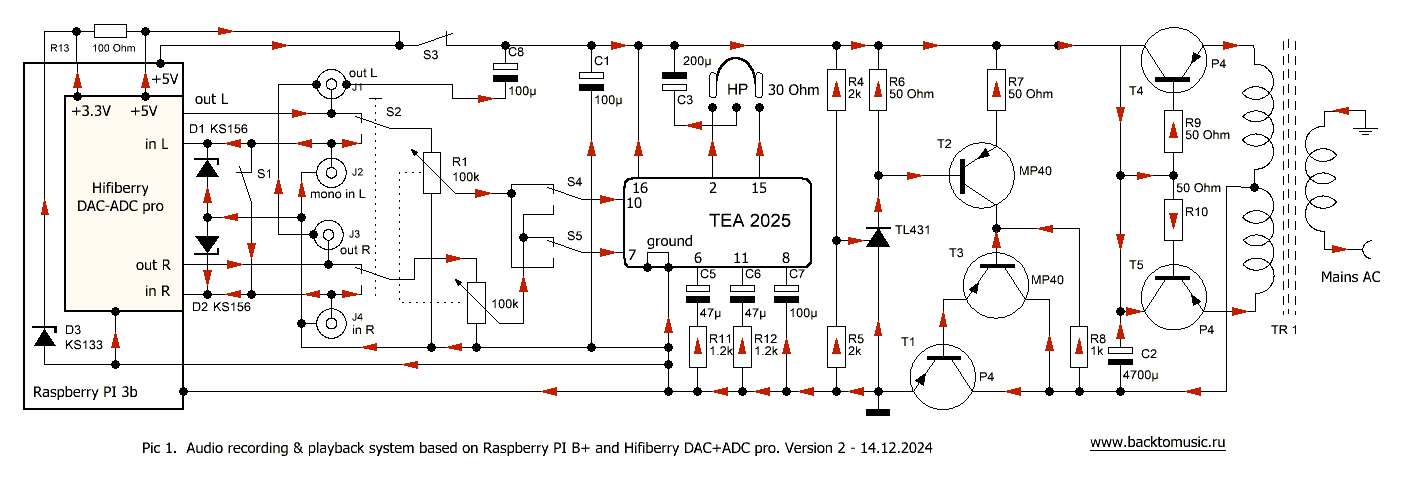 Проведен интересный эксперимент с заменой всего корректора Энергофона на один полевой транзистор, подключенный прямо к пьезо головке и запитанный от HiFIBerry. Упрощение конструкции при этом получалось более, чем кардинальное. Звук у транзисторного преда оказался чистым, пустым и закрытым во всем диапазоне, кроме самых верхов — ни тебе сочного баса, ни обертонов в голосе, ни общего теплого тона. Так что короткий путь дает предсказуемые улучшения только при прочих равных, об этом не стоит забывать.