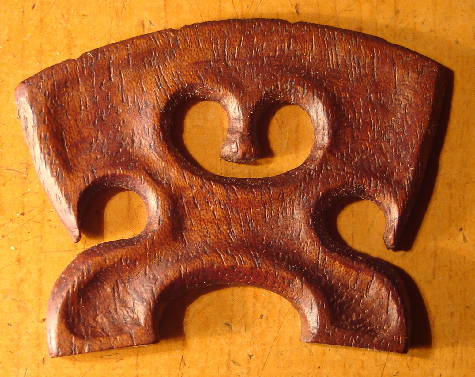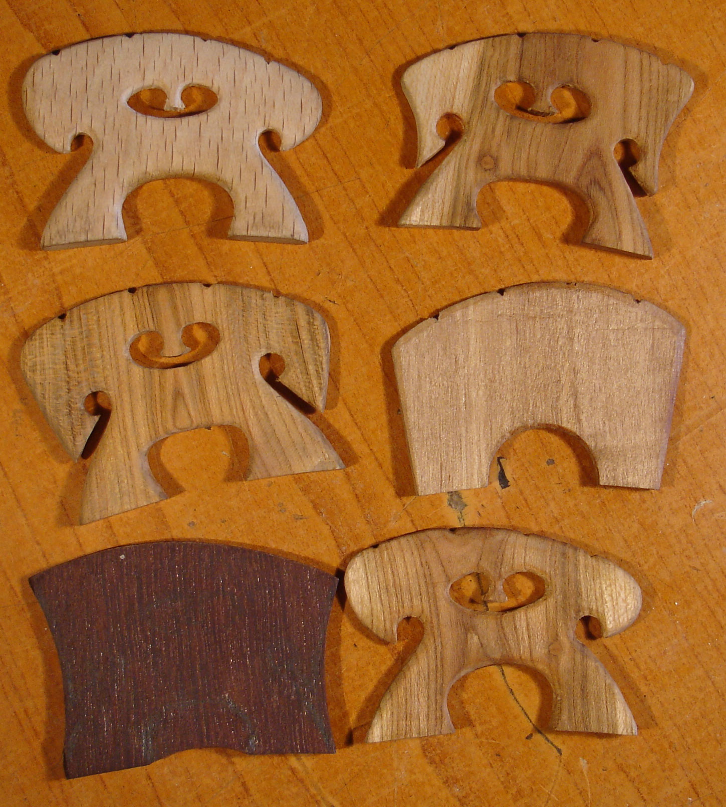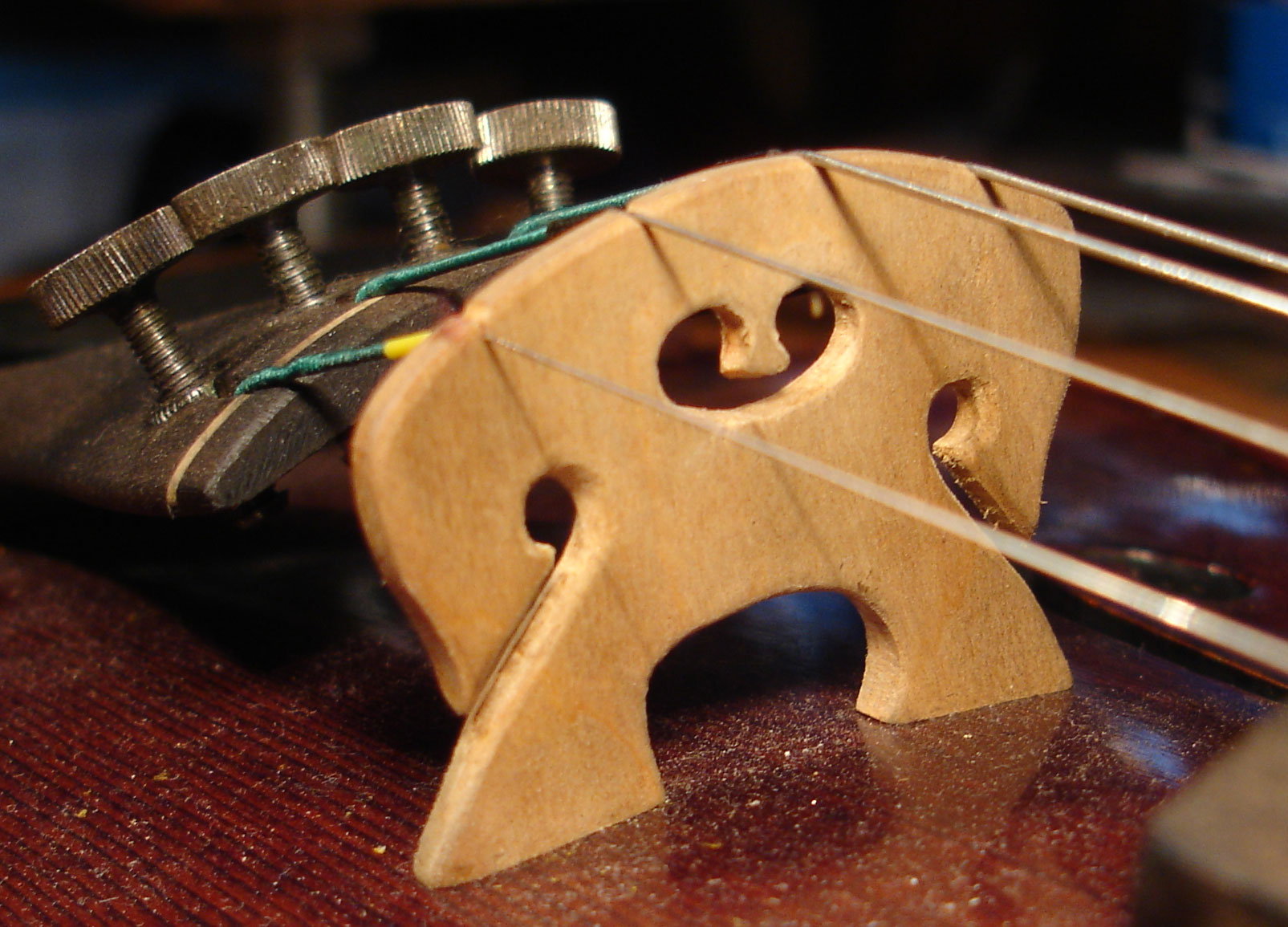 Покупные, скрипичные мостики, в философском смысле, ведут себя идентично механизмам микронастройки и подбородникам, а именно — в обмен на физические удобства, исподволь, как-бы незаметно, лишают вас части положительных моментов в звучании инструмента. Иногда отрицательное влияние мостика терпимо, а с некоторыми мостиками инструмент начинает откровенно «тупить». Оба мостика у моей дочки, на мой взгляд, «отупляли» звучание ее и так не бог-весть какой скрипки так, что мириться с этим я не мог. В итоге, я сделал ей хорошо звучащий мостик из цельного куска старого, красного дерева.