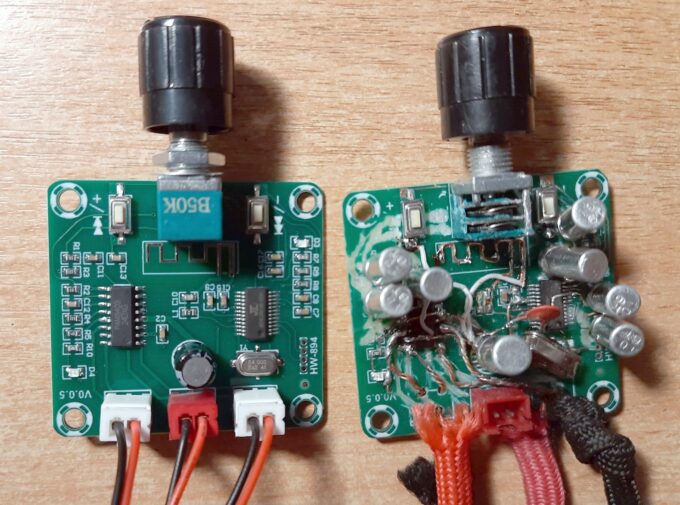 Обратите внимание, на плате с усилителем я «раздел» пластмассовый потенциометр. Звук заметно улучшился, стал почти как у нормального большого винтажного потенциометра. Есть еще ряд мелких «хитростей», но главное я рассказал.