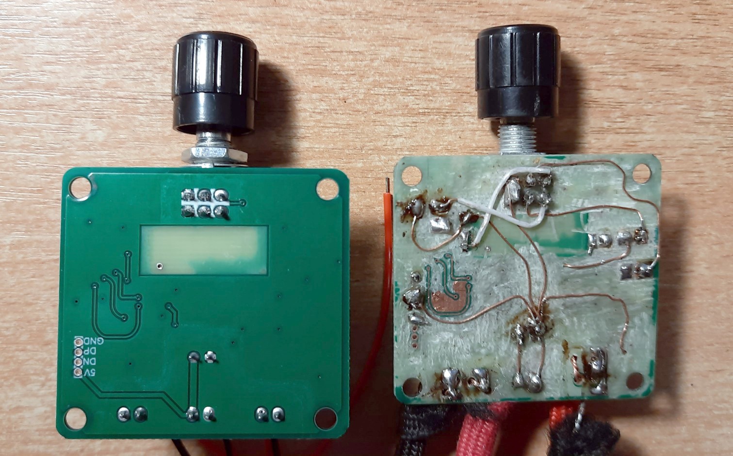 Слева — исходные платы, справа — доработанные.