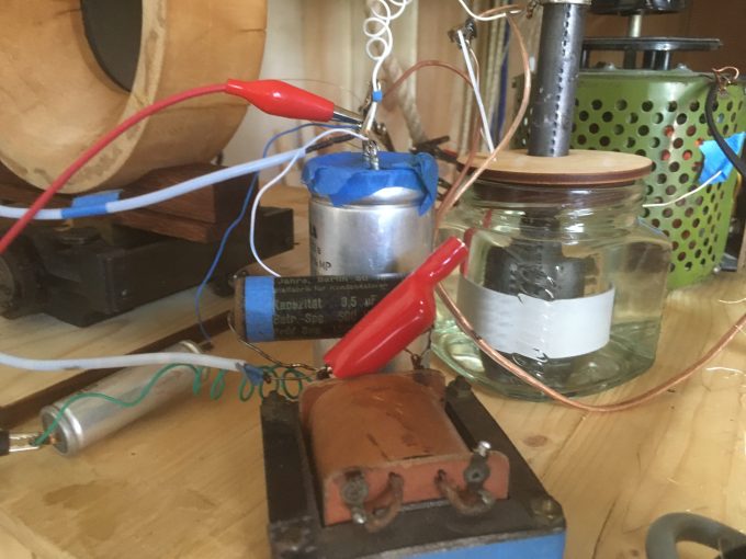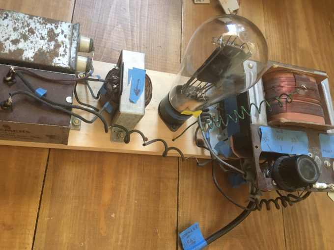 В схеме были уточнены номиналы некоторых компонентов. В связи с кончиной последнего оригинального тиратрона RGN1500, в схему было добавлено питание накала для обычного кенотрона RGN 2004 VL5, и установлен дополнительный самодельный выключатель задержки подключения нагрузки S3. Конденсатор фильтра смещения сетки выходной лампы был заменен на проволочный C10, так же проволочный конденсатор C9 был использован перед ВЧ выходным трансформатором. Из-за периодической нехватки коэффициента усиления, лампа RE11 VL2 была заменена на Siemens Ba.