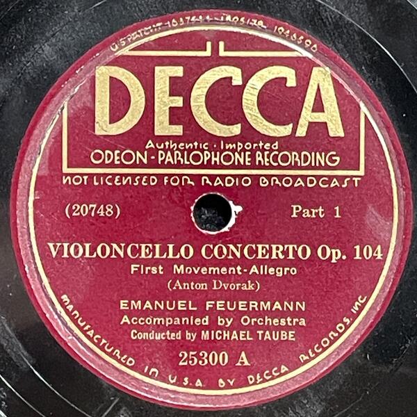 Dvořák Cello Concerto in B Minor — Emanuel Feuermann, Michael Taube — 78rpm shellac 1928