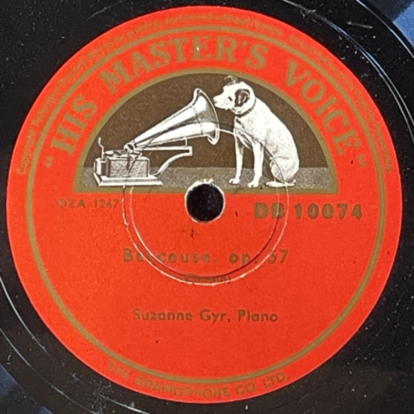 Швейцарские пластинки HMV в приличном состоянии. У Гир приятный звук, печальный образ и соответствующий репертуар. Не солистка, но в неторопливом миноре ее стиль воспринимается гармонично, Berceuse Шопена записана наиболее удачно.